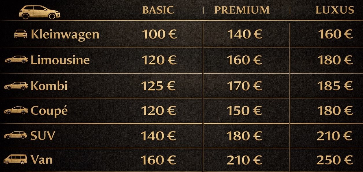 - Aussaugen der Sitze, Teppiche und Kofferraum
